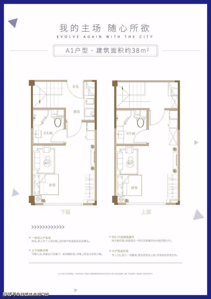 楼上休息区(主卧,次卧,办公区,衣帽间,卫生间),客厅上方挑空约4.75米,动静分离,拥有小别墅的居住体验感。
