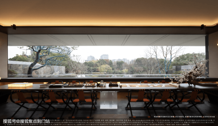 私宴厅内,一侧是西式16人长桌,落地玻璃门一开,便与下沉庭院连成一体,春有花影,夏有凉风;另一侧是中式16人圆桌,最适合家人围坐,笑语盈室。