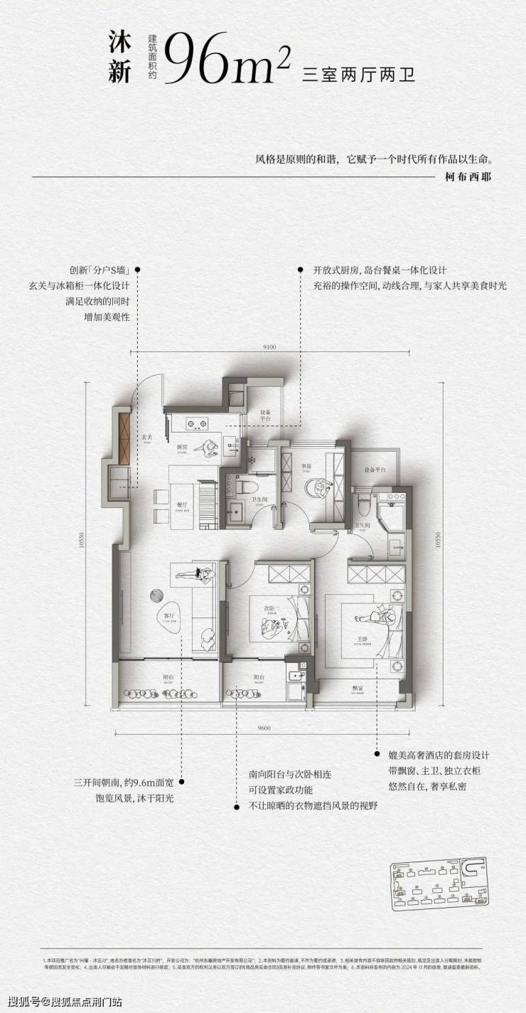 户型设计也花了极大心思:其中三开间朝南的建面约96m²的户型达到了约9.6米的开间,并采用创新“分户S墙”玄关冰箱一体化设计,不但释放了厨房的收纳空间也更符合一般家庭生活需求。创新采用S墙设计,可以做收纳空间,也可以将冰箱外移,实现厨房扩容。