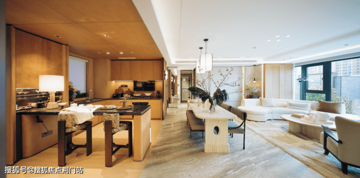 近37㎡餐客厅空间,达到了市面上约130㎡的配置,不仅带来更大的空间感,更减少墙面的视觉阻隔、进行视觉放大。