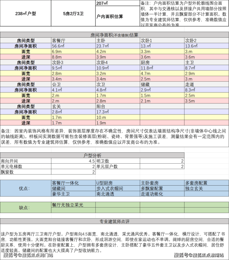 2、建面约238方: