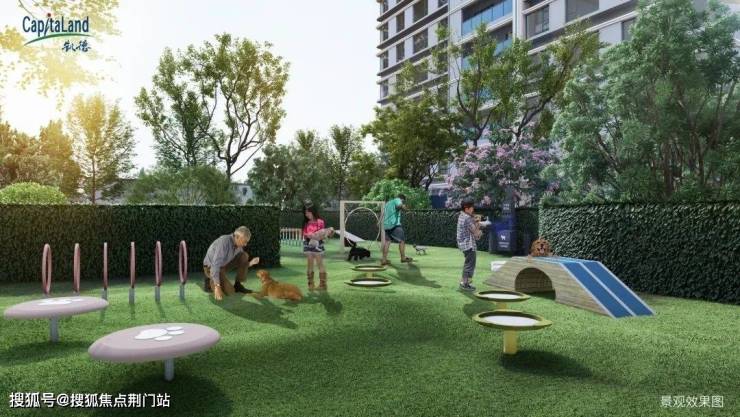 具体来看,从落地生根到迎山影壁,归家仪式感拉满,园区规划的 观景连廊、全龄聚场、一米花园、萌宠天地、茶园休憩、灌篮之梦、曲径通幽等活力景观点,而环绕园区正中的是草坪剧场,孩子们撒欢打滚,支个天幕全家露营,还可以在一旁树下荡秋千……
