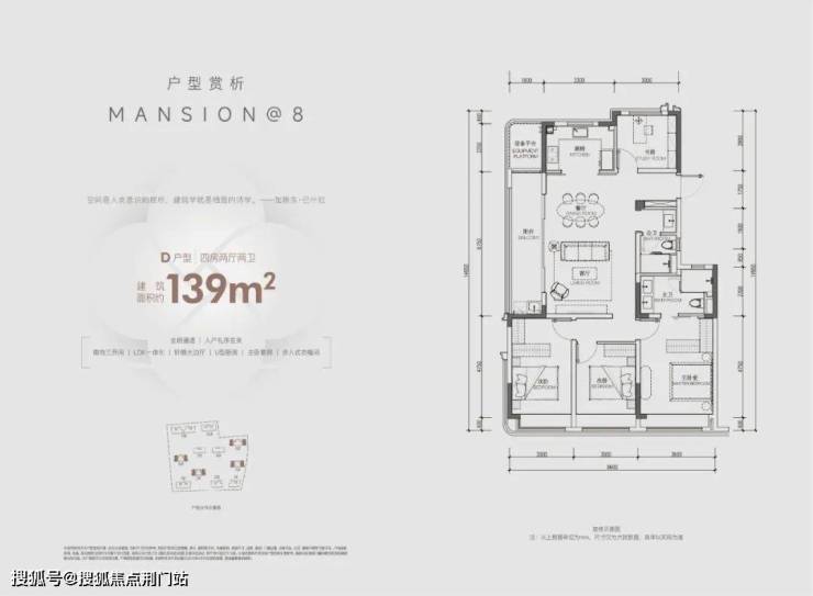 建面约135方边套户型,在空间设计上,升级户型灵动性和社交空间最大化,精心布局 入户玄关,近40方的光幕大横厅、主卧星级套房、全景飘窗、约4.3米面宽的厨房等空间系统,完全是以豪宅的尺度奢享不同阶段的生活。