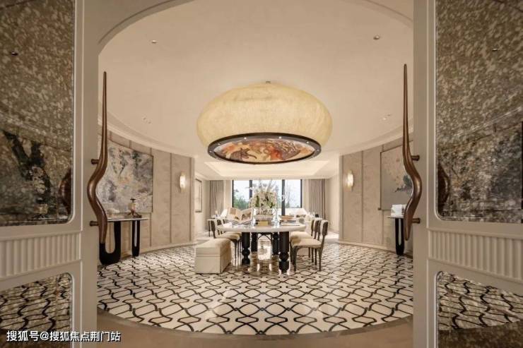 当青翠的山色映照在门前的镜面水池里,当莫奈睡莲画作中的那座桥浮现在大堂的环幕会客厅里,当街上的车水马龙隐现在沿街柱廊里,当这样一座「雅典卫城」矗立在街边,你能感受到绿城又把他们的「庐系」低密产品线推到了一个新高度。