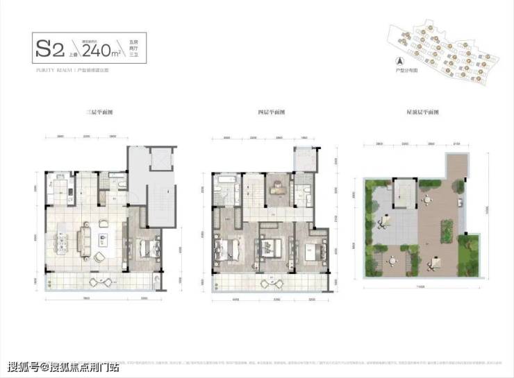还有尺度更豪的建面约240㎡户型,单层就达到了约11米面宽,比西溪云庐260㎡的合院还要阔绰,庭院更是三面环绕!