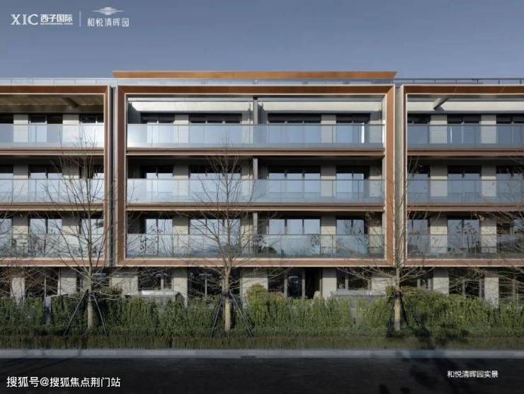 和悦清晖园的建筑设计由绿城六和主笔,总共24幢四层小楼,线条极简的立面,以灰金色镜面玻璃主打,斜切45度角的玫瑰金边框勾勒,潮流感和辨识度俱在。