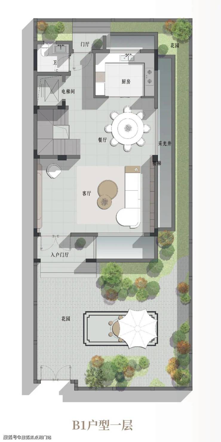 除了天地庭院、全明地下室,B1户型不得不提的是它的四层星空露台。如果你以为它仅仅是预留了一个敞开式的空间的话那就错了。B1户型以边套的优势转角资源,首先为居者打开270°的超广角视野,可纵览城市灯火;其次,B1户型将整个4层都规划成为了独立的休闲区,在功能设计上甚至预留了北向露台、储物衣帽间、功能房等区域,可谓自成一派,实用且高级。