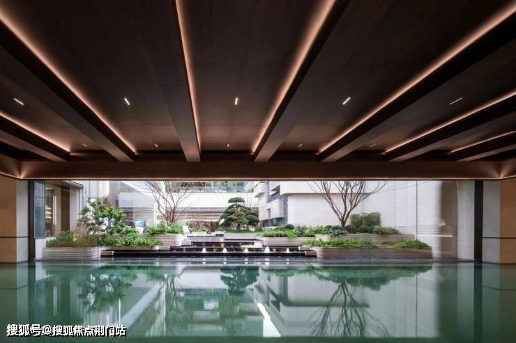 值得一提的是,有别于传统会所泳池无法与外界联通,翠隐江粼的恒温泳池沿着下沉式庭院这一侧打造巨型可移动式玻璃门。