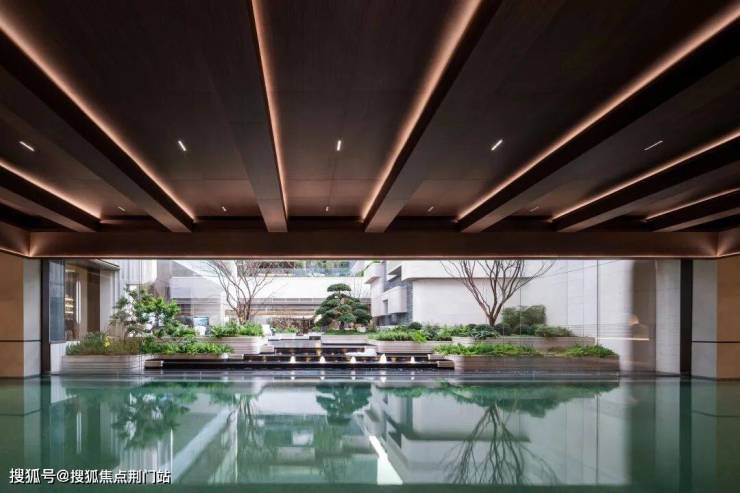 值得一提的是,有别于传统会所泳池无法与外界联通,翠隐江粼的恒温泳池沿着下沉式庭院这一侧打造巨型可移动式玻璃门。