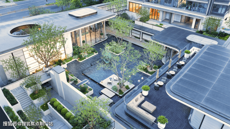 圆形镂空穹顶,池中植入紫薇,寓意福祉盈门。
