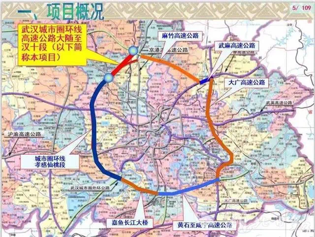 武汉城市圈环线高速公路是湖北“九纵五横三环”高速公路网中的一环,东南西北四段共16个项目分期开工、分段建设,其中东段利用大广高速,南段新建黄咸高速、咸通高速等,西段新建孝仙洪高速、嘉鱼长江大桥等,北段利用麻安高速。此前,圈内的高速路呈武汉为中心的线状分布,大部分城市往来需要借道武汉,费时费力,加重武汉交通压力。