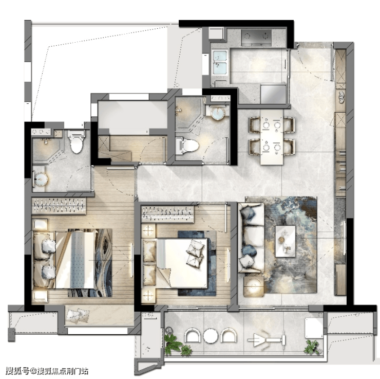 同时通过科学布局,呈现真正“全能三居”。 套房式主卧设计,清晨被阳光唤醒,从容梳妆洗漱,夜晚卸下疲惫,伴着温柔月色入睡;阳光次卧空间,夏日清风、冬日暖阳,北向房间随心而设书房、儿童房或健身房,给家人同等质量的栖心场域。