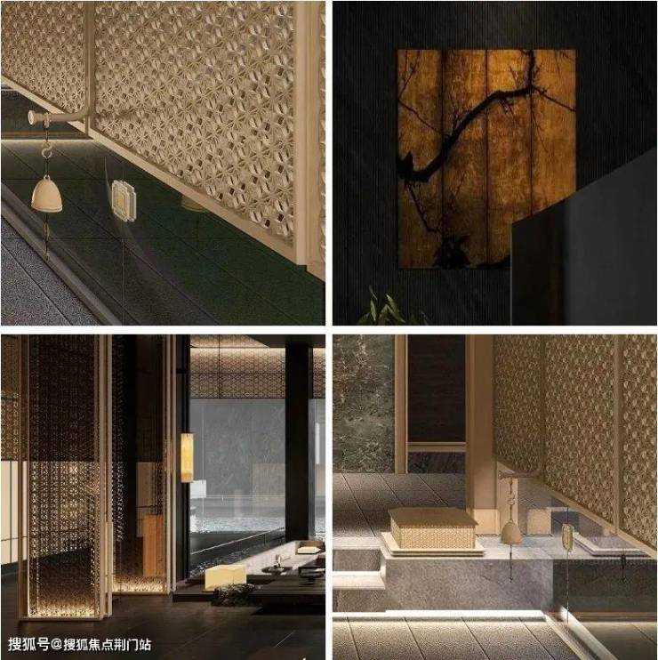 你看,项目提取古梅的形象,通过屏风、格栅、风铎等装饰细节融入到宋式风格中,既传承了文化特色,又为空间增添了细腻、精致和奢华。