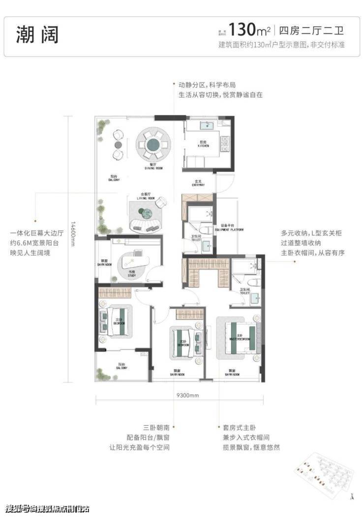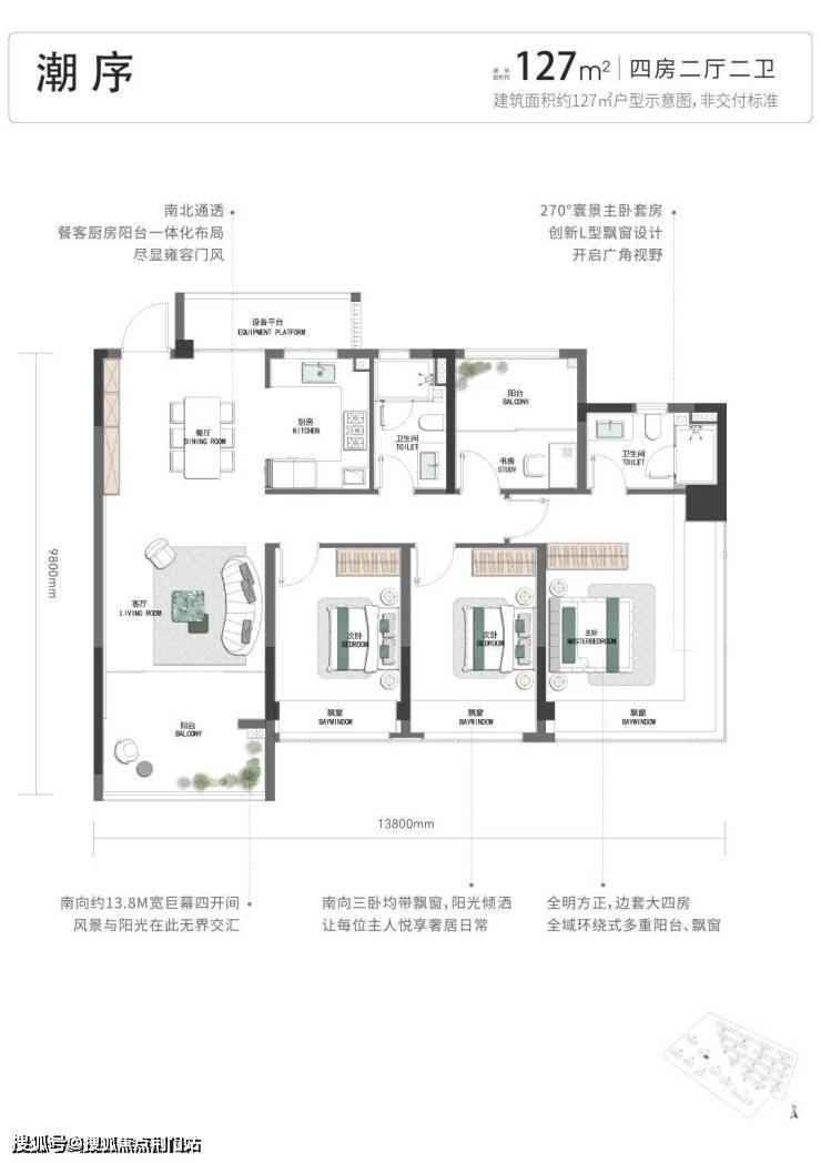 再来看项目的四房户型,有建面约127方、约130方2款。
