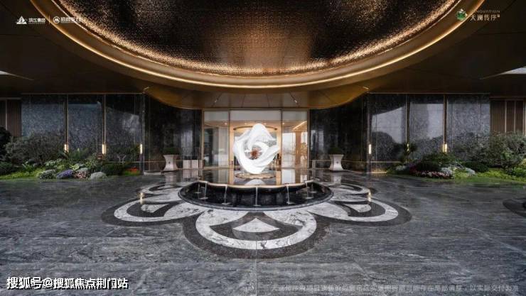 超高的奢石含量,是天澜传序府的标志之一,挪威蓝翡翠、铂金钻、东方白、巴西利亚黑……从门头一路蔓延进会所,蔓延到叠墅的室内和外立面上。