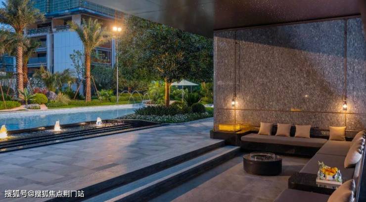 入口处那三幅卢浮宫“同款”的月光米黄莱姆石“扇面”立于水系之上,在灯光的照射下温润有余,奠定了项目低调奢华、空谷幽兰的基调,似若一座城市中的“安缦”。
