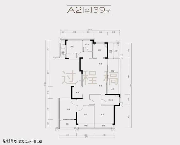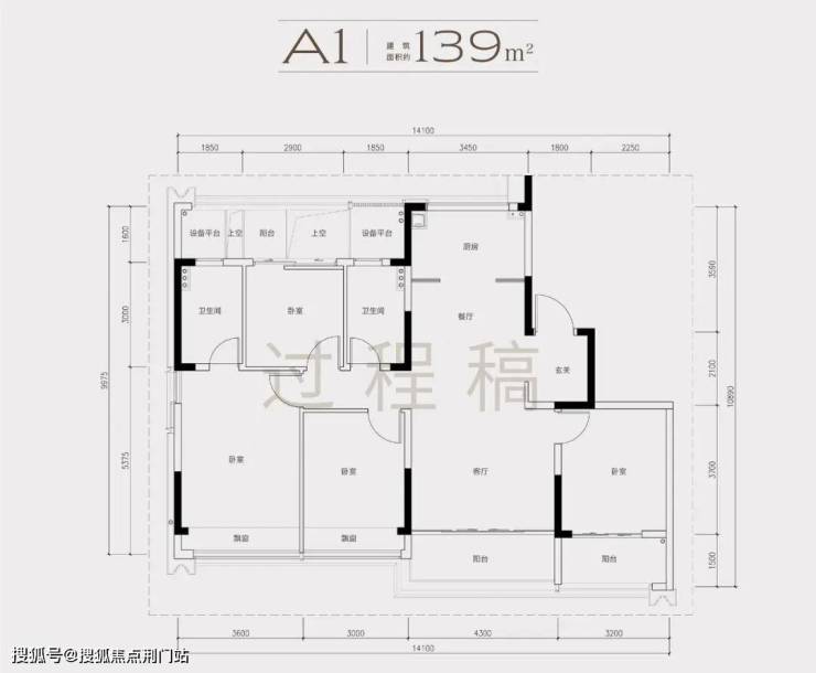 2)139方A1南厅户型,4房2厅2卫,得房率86%