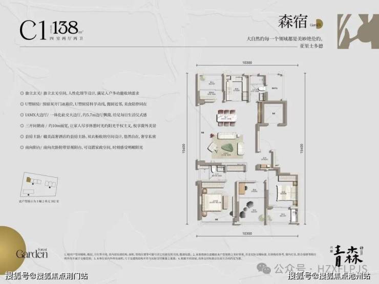 一进院:酒店式归家入口;二进院:森林溪境风景游园;三进院:定制酒店式归家入户。