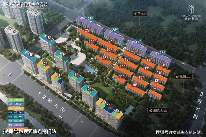 项目坐落于12号大街与3号大街交汇处,毗邻金沙湖公园及沿江湿地公园,直线距离钱塘江与金沙湖各约1.8公里,享有双湖双公园景观资源。潮映杭园规划8幢13-17F小高层、4幢7F洋房及17幢4F排屋,总计649套房源,产品类型丰富多元,满足不同改善客群需求。