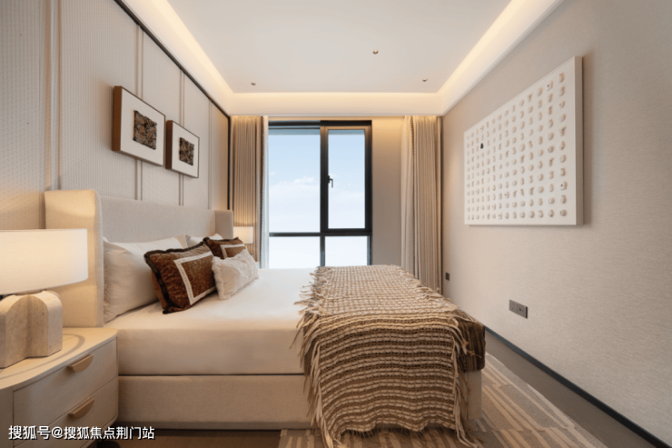 2米大床陷在皮革硬包里,前置整装一体化设计保证整体搭配效果,晨起的阳光透过窗帘缝溜进来,落在床头柜的茶杯上,漾出一圈暖意。