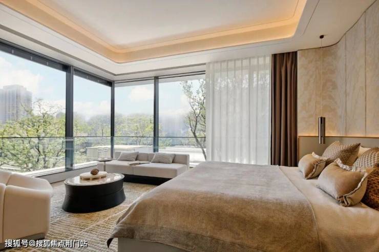 建面约245㎡的边厅户型,则在主卧留出了270°转角窗,在晨昏之间捕捉窗外美景与光影流动。