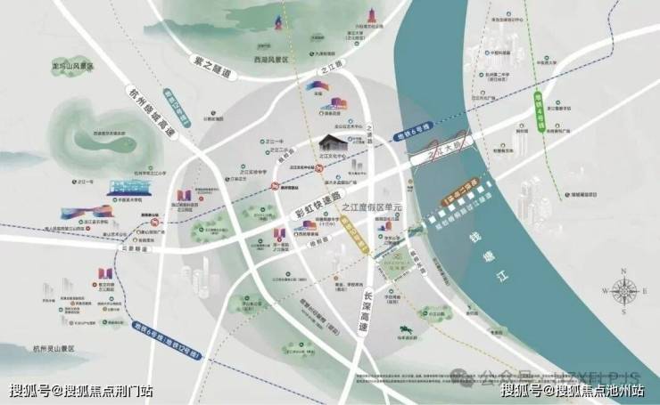 项目北靠西湖群山,东侧钱塘江,直线距离约800米钱塘江,稀缺江景资源;