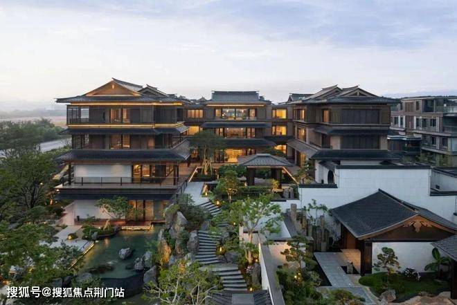 建筑立面:古今交融的诗意表达:外立面以香槟金铝板为基调,搭配蓝眼睛石材与玻璃幕墙,融合传统歇山重檐、纳福悬鱼等元素,既保留宋式建筑的对称美学,又赋予现代建筑的轻盈通透。合院组团采用三面庭院设计,L型景观面与环绕式檐廊,将超山梅影、丁山湖光引入每一扇窗景!