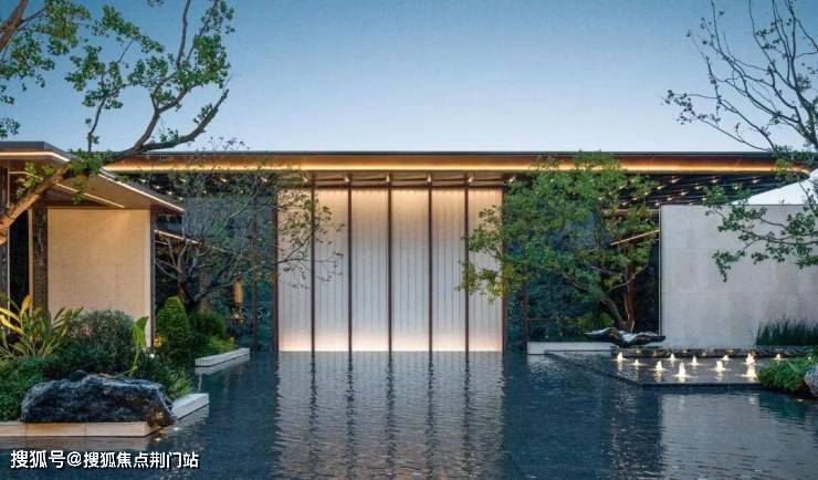 穿过归家大堂,入眼的便是大片的镜面摩登水院,涌泉叠水,高低错落、动静相宜。 景观 设计团队更是在水院里做了一个下沉式卡座,未来业主可以在这里闲坐观景,与三五好友可以畅聊天地。