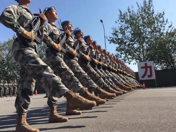 与仪仗方队临近的一支队伍,远远地就看见他们头戴的蓝色贝雷帽,几乎不用介绍,记者立刻认出这是中国“蓝盔”,维和部队方队。