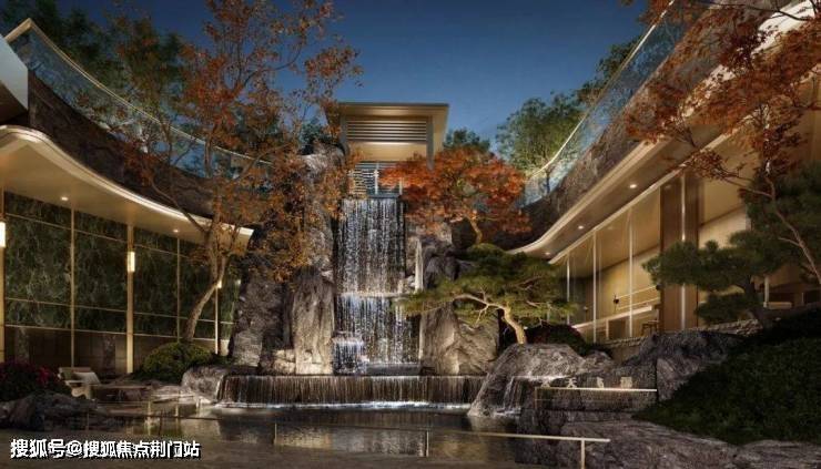 因为整体抬高,一步入大门, 一练约7米高的悬瀑飞流直下,将外界喧嚣瞬间过滤——这些年,只见过高奢酒店炫技的电子瀑,与这般天然隐逸相比,高下立判。
