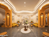 建筑立面采用香槟金铝板配合大面玻璃,细部使用美国灰麻石材,辅以精致金属线条,钢琴漆工艺波浪铝板,一看就很贵气,很有辨识度。