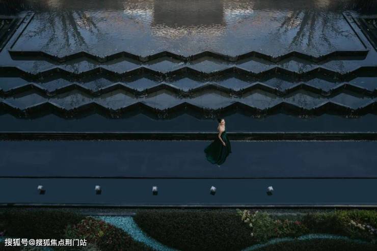 再看约1200方下沉庭院,叠水成瀑,区别于市面上大部分楼盘的“坑洞感”,形成上下两个平行空间的双层滨水度假系统,一看就很赞。