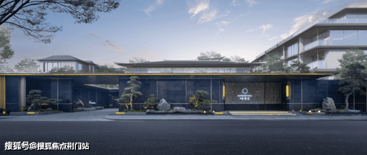大门跨度达50米,本项目并未一味追求宏大规模,反而倾心于内敛的奢华风格。入口处墙面精心选用了亚马逊黑奢石,其色泽深沉而富有层次,纹理别具一格,彰显出一种沉静与尊贵的气质。