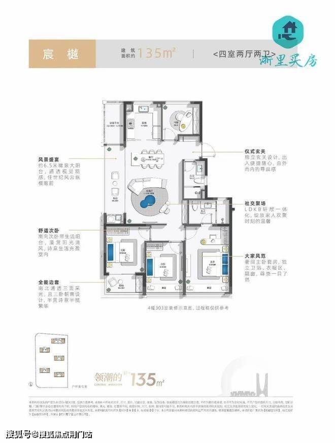 【面积户型】:约110㎡三房两卫、约135㎡四房两卫