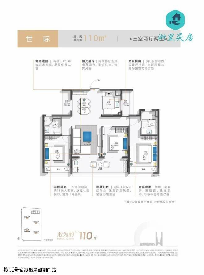全能边套|南北通透三面采光,且三卧朝南设计,半赏诗意半揽繁华