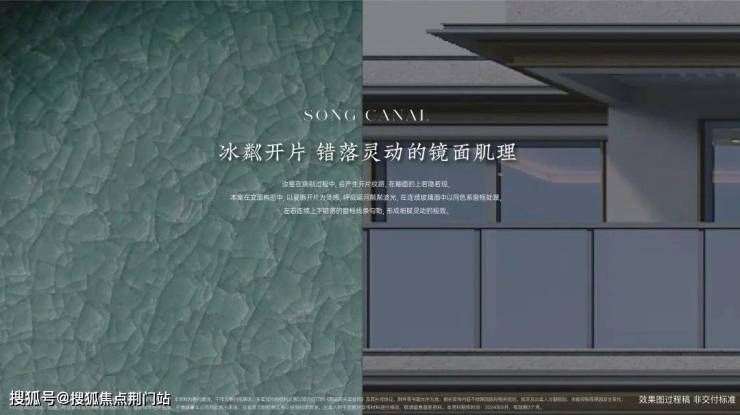 大玻璃构造的天青画屏,还原宋代天青汝窑“玛瑙入釉,炼镀金边”的金属线条勾边,以及将运河的粼粼波光与汝窑冰粼开片相结合的窗框做法,错落的线条形成灵动的韵律。