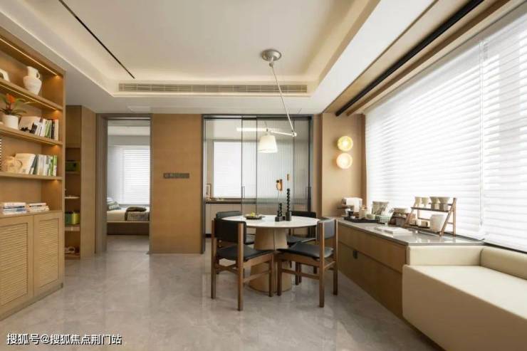 从园区入口到园区景观、建筑外立面、架空层、单元入户,再到样板房...几乎就是一场360度呈现的产品力「环幕大片」。因为南临一线东沙湖拥有得天独厚的水系自然资源,项目景观借鉴曼谷四季酒店设计灵感,在社区人行入口、中央景观、核心节点区域铺陈多处水景,将整个小区打造成一座“微缩的东沙湖”。