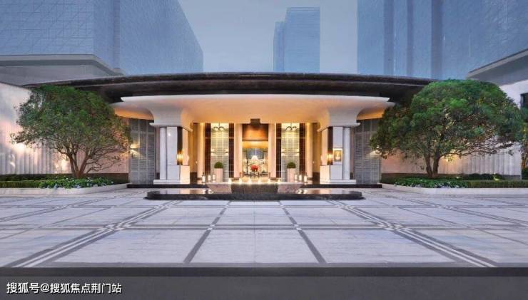 入口宽度达60米,设计灵感汲取自深圳安达仕酒店的精髓,选用宝格丽蓝石材、鎏金屋顶与卡里冰玉方柱,归家之旅犹如穿梭于艺术殿堂。