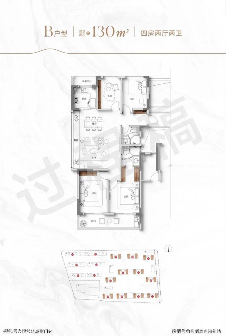 如果你想要舒适度进阶,也可以考虑边套建面约130方四房两厅两卫户型。
