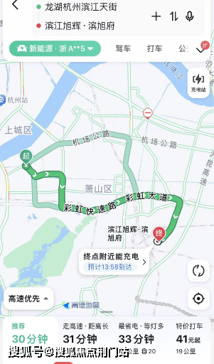 如果从武林—文晖一带的中心板块出发,去奥体,所花的时间也几乎一致。