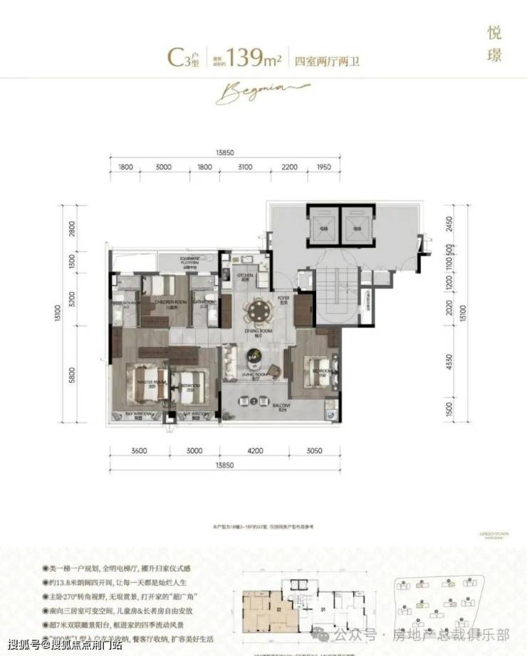 139㎡C3户型·四房两厅两卫,尊享一梯一户私密归家体验,匠心独运,入门即享光之盛宴,南北畅通风韵;四开间均朝南,南向面宽达13.8米,空间布局严谨考究,方正格局,配备充足收纳区域;主卧配备270度全景视角,尽享无限风光。