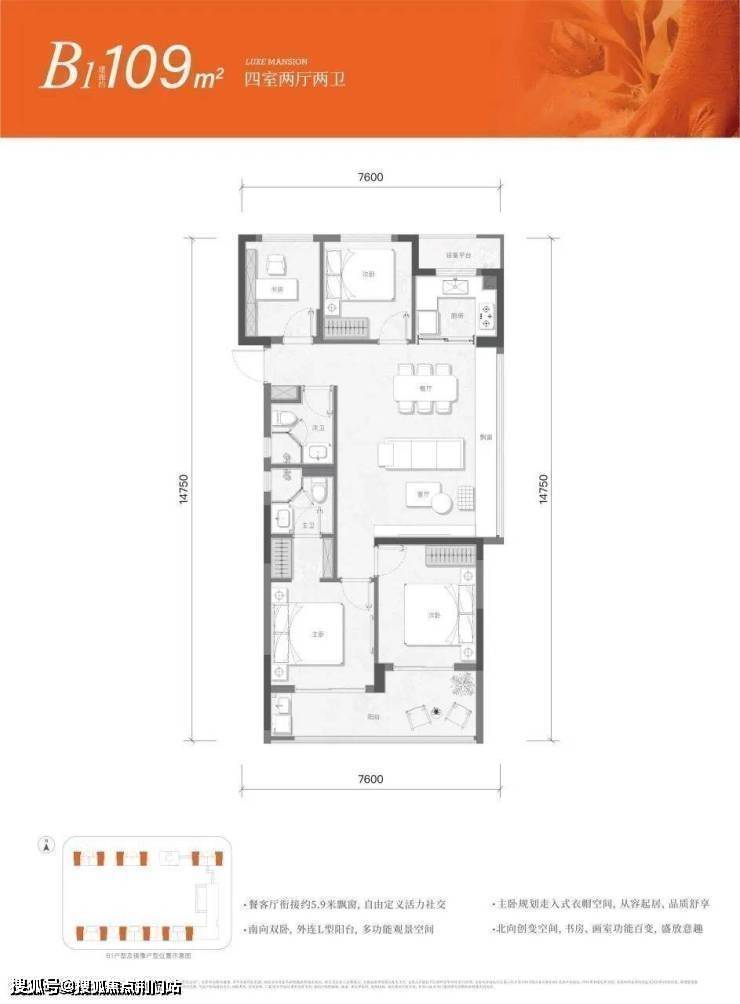 约109㎡四房两卫,可满足小夫妻“安住5—10年”的打算,甚至完全能容纳二胎出生。