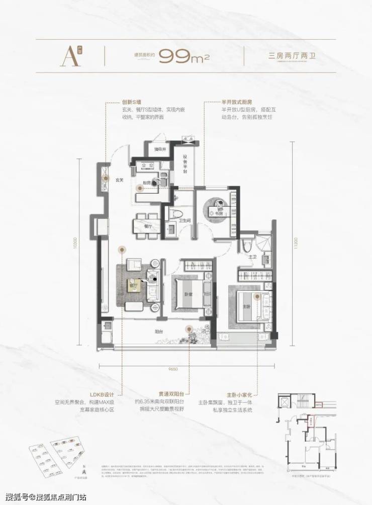 相比于168与129,99可谓将性价比拉满,三房两卫、LDKB设计满足居住的舒适性需求,三开间面宽+双开间阳台,将家的“观景面”放大,并且通过创新S墙设计,实现“内嵌式”收纳,在提升收纳能力的同时,更实现墙面的平整美观。
