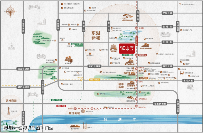 地铁9号线五洲路站100米,无缝换乘1/3(二期在建)/18号线(在建),邻近秋石高架、东湖高架、望梅高架,近揽黄金十字轴线—荷禹路、五洲路,通达全城;临平高铁北站(规划)、沪乍杭铁路,极速融沪,连接长三角。