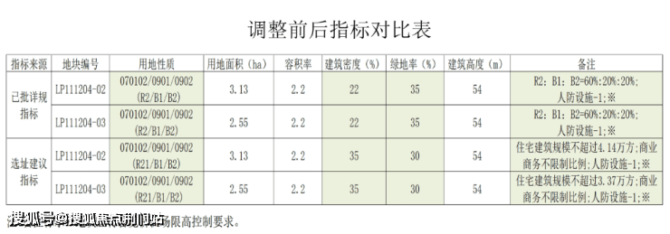 此次调整包括建筑密度从22%调整为35%,绿地率从35%调整为30%,用地面积、容积率以及建筑高度均不变;此外,地块取消商业、商务面积占比分别为20%、20%的限制。