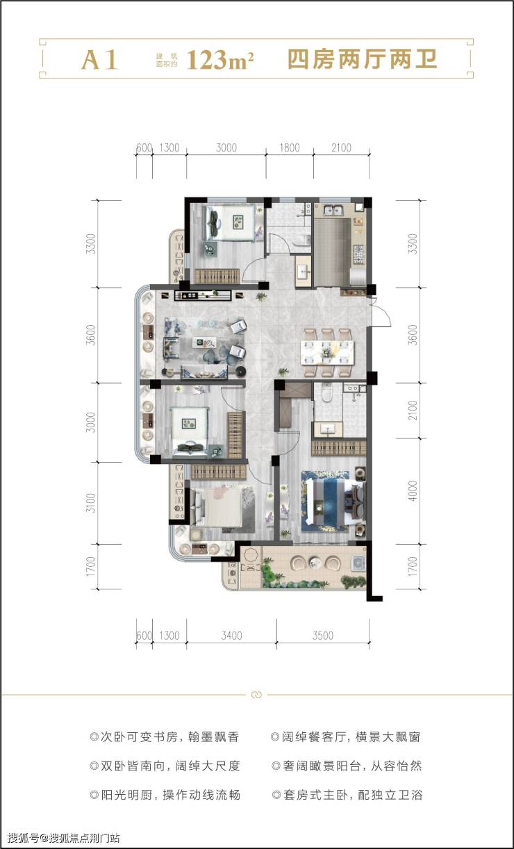 户型细节:瞰景阳台的转角皆优化为圆弧形设计,不仅体现了柔和的美感、也进一步提升了产品独特品质感。