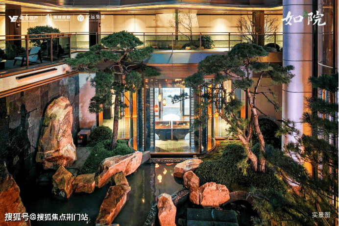 约1300㎡下沉式庭院三层立体观景式设计,约15米叠石飞瀑、碧玉水景等奢景,演绎沉浸式的立体山水画境。