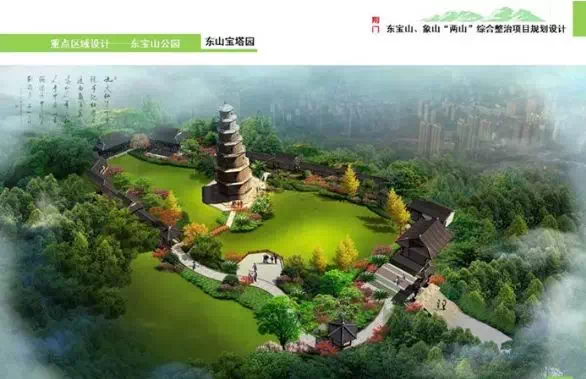 东宝山森林公园建设内容包括东山宝塔和蔷薇园节点改造、上山道路、配套绿化、公厕、音响、监控、水电配套等。