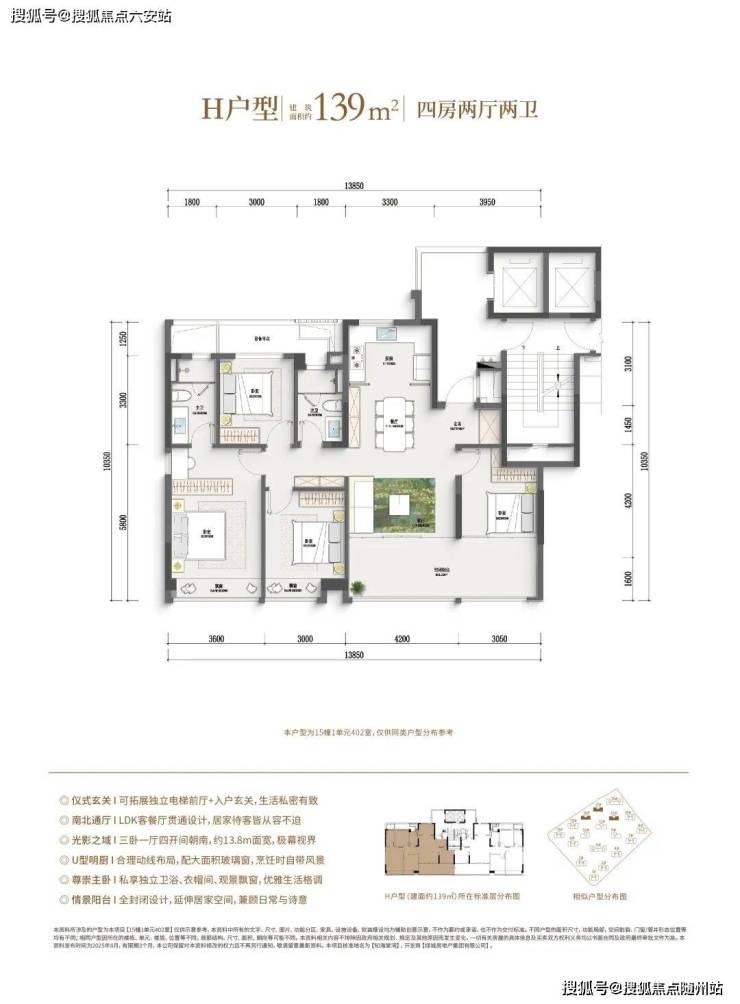 128-139㎡户型强调空间尺度和功能优化,适合品质改善及多孩家庭。128㎡边套四房户型采用边厅设计,空间更大,功能性更强。