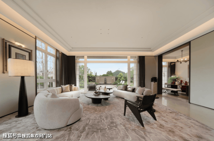 2. 去繁化简,符号典雅:突破传统法式小窗和窄面宽桎梏,采用大面积落地窗,超10米大面宽极致优化采光,消融室内外界限。修长纤细窗框比例,完美契合现代审美对通透与精致的双重追求。